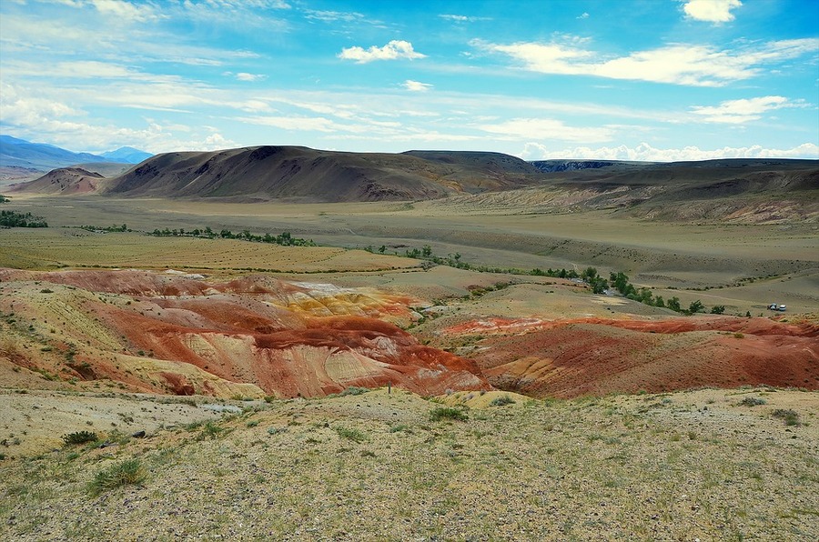 Planine Rainbow Altaja ili Kyzyl-Chin-a su slikovita brda koja se prelijeaju nijansama narančaste, bordo, senfa i bijele boje. Njihov veličanstveni spektar boja rezultat je različitih slojeva obojene gline kojom obiluje tlom ovog kraja, te joj daje izgled kao da ste na Marsu.